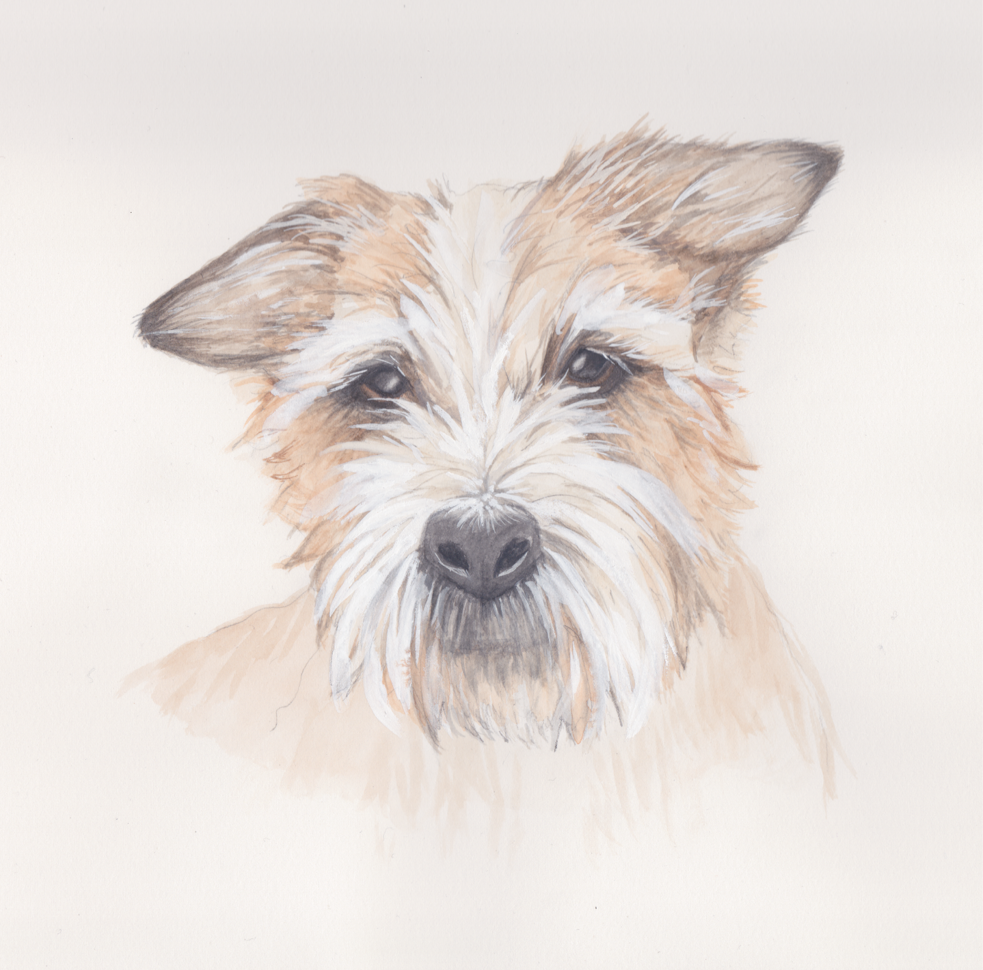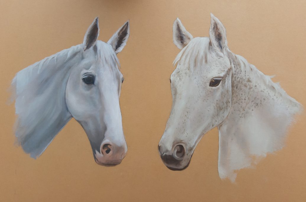 Once the photographs have been received, initial sketches are created in order to capture the personality and character of the subject. This is then used as a basis to produce the finished painting. Examples of the stages can be seen here.